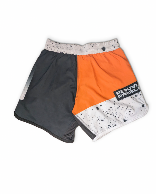 BLACK WHITE AND ORANGE PERUVIAN PROBLEM SHORTS