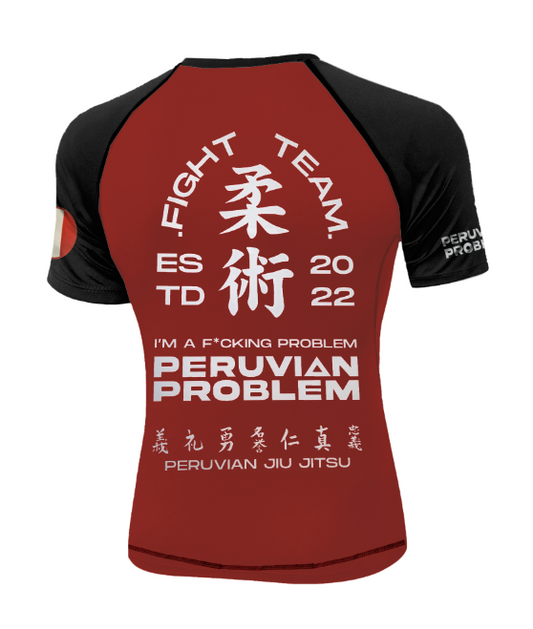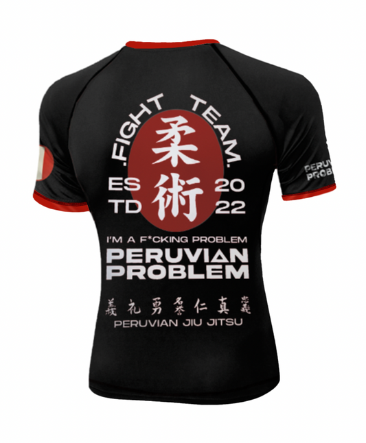 LIMITED EDITION - BLACK AND RED PERUVIAN PROBLEM FIGHT TEAM SHORT SLEEVE RASH GUARD